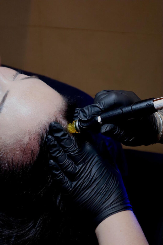 Keravive is a scalp treatment offered through the HydraFacial system, designed to improve scalp health and promote healthier hair growth. It combines cleansing, exfoliation, and hydration to remove buildup, dead skin, and oils, while nourishing the scalp with peptides and growth factors. The treatment helps to create a better environment for hair follicles by stimulating circulation and revitalizing the scalp. Often used by those experiencing thinning hair or aiming to maintain a healthy scalp, Keravive is a non-invasive procedure typically performed in a series for optimal results. It can be a great addition to a hair restoration regimen for both men and women.